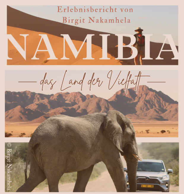 Erleben Sie die wunderbare Natur, Einsamkeit, faszinierende Tierwelt, Herzlichkeit der Menschen, Selbständigkeit der Frauen und erfahren Sie Insiderwissen von Birgit Nakamhela, welche 24 Jahre in Namibia gelebt hat und seit 5 Jahren wieder in Deutschland zu Hause ist. Somit können viele Hintergrundinfos, praktische Reise-Tipps und authentisches Detailwissen über "Land und Leute" unterhaltsam vermittelt werden. So führt die Reise z.B. in die Hauptstadt Windhoek, durch die Kalahari-Savanne, auf die riesigen Sanddünen von Sossusvlei und sogar mit dem Ballon über